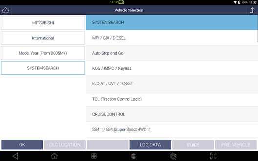 No hassles for locating the metal tag and finding the correct engine codes. Simply select the diagnostic connector type before selecting the system to test when testing Japanese vehicles. No model Code, No Engine Code, No detailed menu selections are required.
