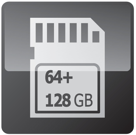 The internal flash of 64GB accommodates software applications and data for all brands with room to spare, and the external memory space up to 128GB allows an extensive storage for saving images and recorded data.
