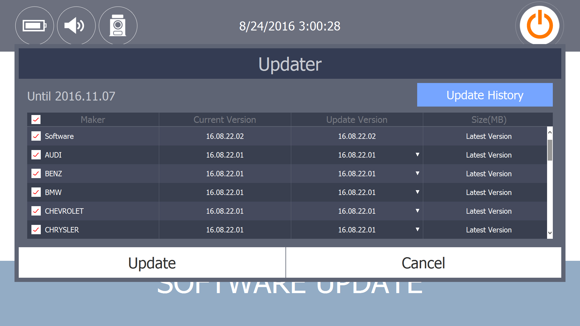 When the Windows tablet or PC is connected to the internet, G-scan Tab connects to the GIT server through the internet, checks and downloads available updates and patches, and keeps the diagnostic database up to date.