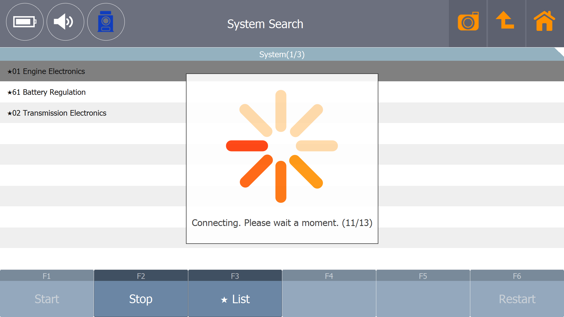 "System Search" option automatically checks all vehicle systems and reports fault codes, and provides access to advanced diagnostic functions available for each detected system.